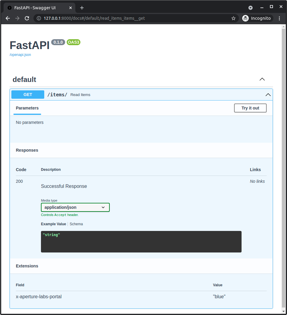@app.get("/items/", openapi_extra={"x-aperture-labs-portal": "blue"})